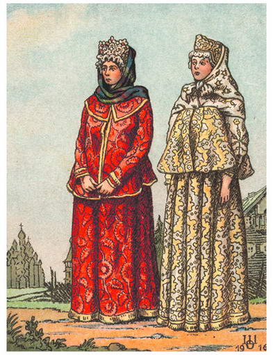 Великороссы центральных губерний. 1862. Иллюстрация из книги Pauly Theodore, de. Description ethnographique des peuples de la Russie. Par T. de Pauly. Publie a I’occasion du jubile millenaire de I’Empire de Russie. Saint-Petersbourg, 1862