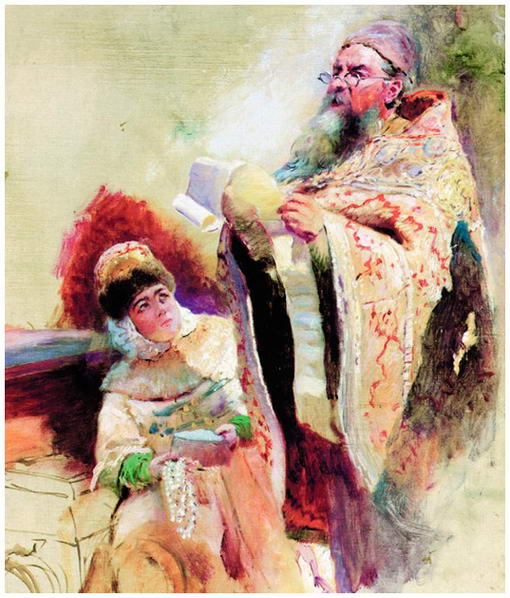 Константин Маковский. Боярышня и священник. XIX в. Частная коллекция / Wikimedia Commons