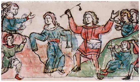 Игрища и пляски северных племен (радимичей, вятичей и северян). Миниатюра из Радзивиловской летописи. Кон. XV в. Библиотека РАН / Wikimedia Commons