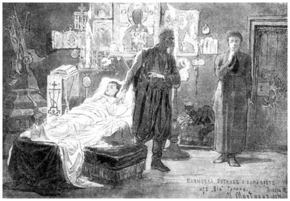 Панночка и Хома Брут. Иллюстрация Михаила Микешина к повести Николая Гоголя «Вий». 1870-е гг.