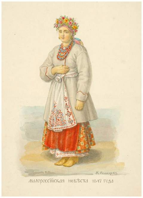 Малороссийская невеста в венке. Рисунок Федора Солнцева.