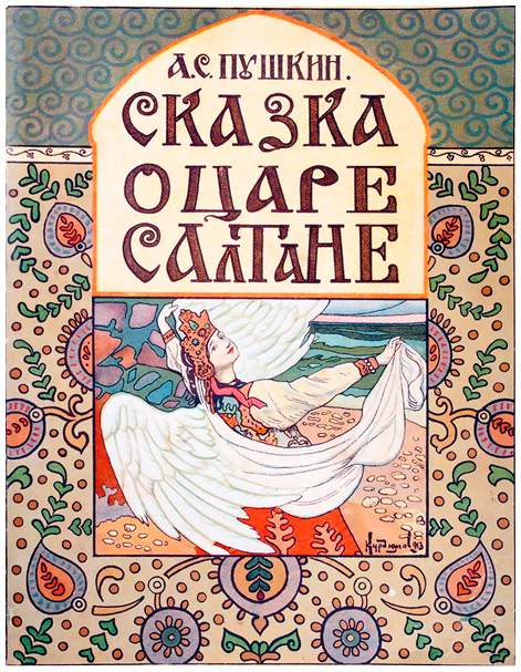 Царевна-лебедь. Иллюстрация В. Н. Курдюмова на титульном листе «Сказки о Царе Салтане». 1913 г.
