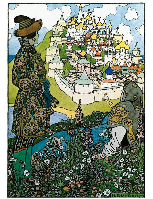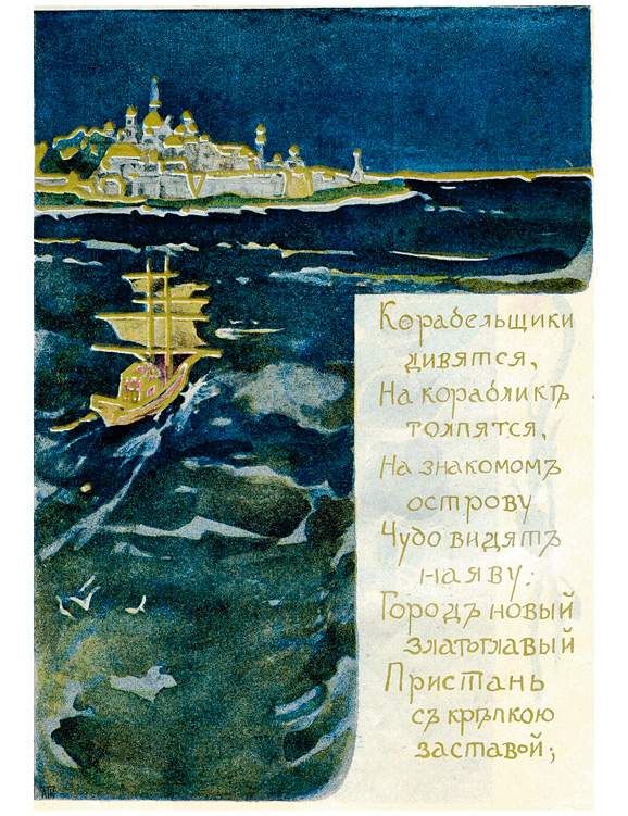 Остров Буян на иллюстрации Ивана Билибина к «Сказке о царе Салтане». 1905 г.