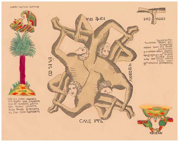 Русская магическая традиция отнюдь не исчерпывается лечебными заговорами. Еще есть любовная магия. Вот, например: «Встану, не благословясь, пойду, не перекрестясь, в чистое поле. В чистом поле стоит тернов куст, а в том кусту сидит толстая баба, сатанина угодница. Поклонюсь я тебе, толстой бабе, сатаниной угоднице, и отступлюсь от отца и от матери, от роду, от племени, Поди, толстая баба, разожги у красной девицы сердце по мне, имярек». Или: «Стану я, раб дьявольский имярек, не благословясь, пойду, не перекрестясь, из дверей в двери, из ворот в ворота новобрачных, и выйду я во чисто поле, во дьявольско болото. Во чистом поле стоят ельнички, а на ельнички сидит сорок сороков — сатанинская сила. А во дьявольском болоте Латырь бел камень, а на Латыри бел камени сидит сам сатана. И пойду я, раб, к Латырь бел камню, и поклонюсь я имярек самой сатане и попрошу его: “Ой же ты, могуч сатана, как ты сумел свести (имена мужа и жены), так сумей и развести, чтоб друг друга не любили, друг друга колотили и порой ножом порезали. Ведь я твой раб, я твой слуга, и по сей день, и по сей час, и по мой приговор — во веки веков”».