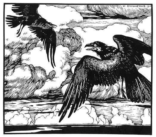 Иллюстрация Ивана Билибина к стихотворению Пушкина «Два ворона».
