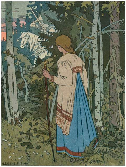 Дремучий лес на иллюстрации Ивана Билибина к сказке «Василиса Прекрасная». 1902 г.