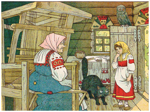 Девушки из сказок «Финист – ясный сокол» и «На восток от солнца, на запад от луны» вызволяют женихов с помощью золотого веретенца, полученного у Бабы Яги. У нее же Василиса научилась ткать и шить рубахи, которые «царям впору», причем девушка была абсолютно уверена в своих силах. Когда царь не нашел нужной портнихи и приказал раскроить и сшить рубахи Василисе, та сказала, что «знала, что эта работа ее рук не минует».