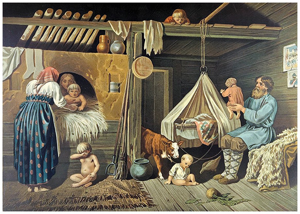 Крестьянские дети зимой в избе. Иллюстрация из книги Е. А. Покровского «Физическое воспитание детей у разных народов, преимущественно России».