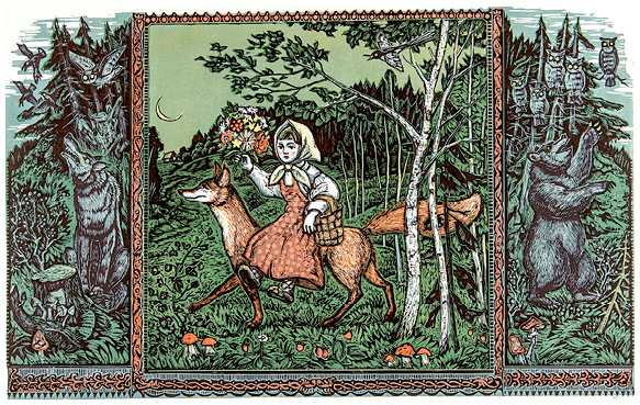Снегурушка и лиса. Иллюстрация Виктора Пятакова из серии «Русские народные сказки». Екатеринбургский музей изобразительных искусств.