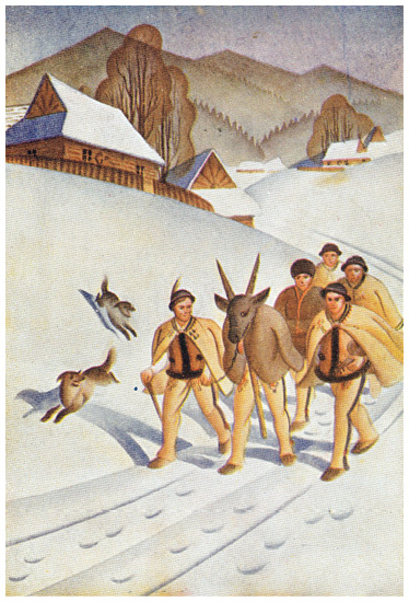 Колядование у поляков. Открытка с иллюстрацией Вацлава Боратынского.