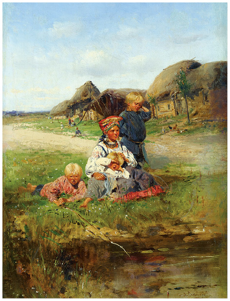 Крестьянка с детьми. Картина Владимира Маковского. 1883 г.
