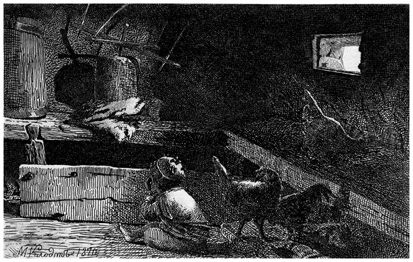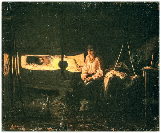 Уголок в курной избе. Рисунок Михаила Клодта.