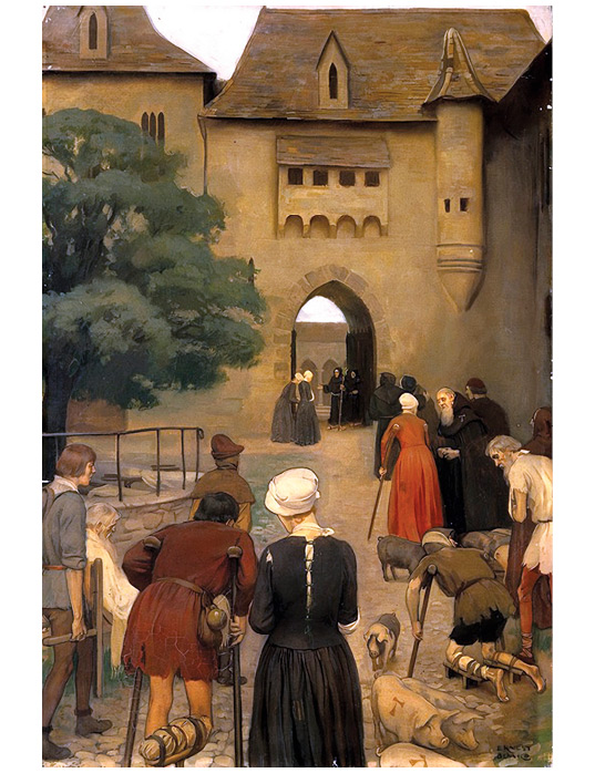 Больные эрготизмом у ворот аббатства Святого Антония, мощи которого, как считалось, исцеляли болезнь. Картина Эрнеста Борда.