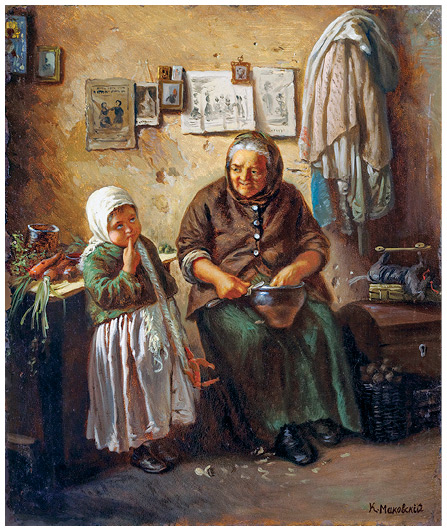 Наставление бабушки. Картина Константина Маковского. 1869 г.