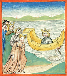 Лоэнгрин покидает Эльзу. Миниатюра из манускрипта XV в.