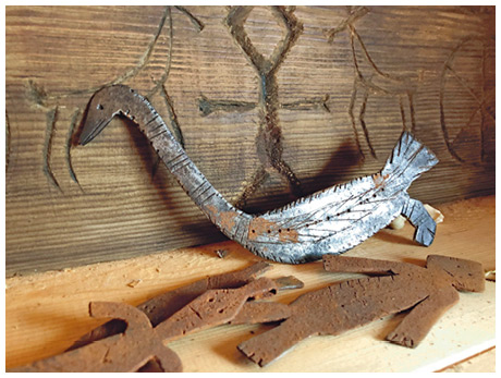 Металлическое изображение есьденг, орнитоморфного духа-помощника кетского шамана.
