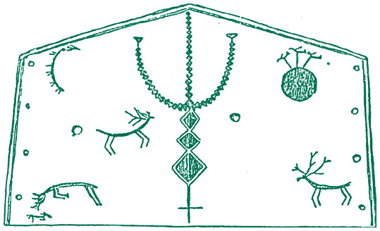 Получение даров. Духи, у которых гостит молодой шаман, наделяют его дарами в знак установившихся отношений. Эти предметы представляют собой, во-первых, элементы облачения и ритуальные атрибуты шамана: бубен и колотушка, подстилка для камлания, наголовник и обувь; во-вторых, волшебные средства — знаки будущей удачи камланий: семь трав от семи болезней (ДН, с. 87), очки, похожие по описанию на бинокль (СН, с. 98), оленьи шерстинки: «Ты будешь удачным шаманом для оленей, вот поэтому я отдаю тебе это», — говорит дух-хозяйка оленей (ДН, с. 89). Наконец, дарами оказываются чудесные существа — духи-помощники в будущей практике: мышь и горностай (ДН, с. 86), гуси и лебеди, гагара (ДН, с. 86; СН, с. 100–102), олень Быдынгка (СН, с. 106). Волшебное средство и чудесный помощник могут соединяться в одном образе: «Вот ты ко мне и пришел, в будущем ты будешь приходить ко мне за советом. Вот, видишь на моем костюме железное изображение дикого оленя? Возьми ты это в подарок. Всегда ты должен употреблять его, когда увидишь, что мало людей и мало оленей. Если станешь камлать доброму божеству человека или оленя, за этим оленем следуй. Если придешь ко мне и я тебя не узнаю — покажи этого оленя. <…> Если будешь употреблять его, то и семья прибавится, и скот прибавится. Всегда употребляй его. Этот олень людей счастливыми сделает» (СН, с. 104).