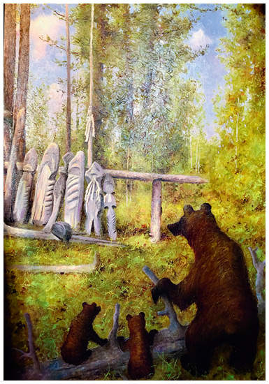 Кетское священное место в лесу. Художник Язеп Мажулис.