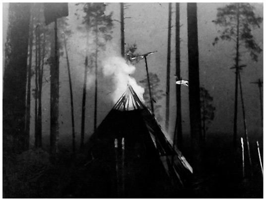 Чум, окруженный духами во время шаманства.