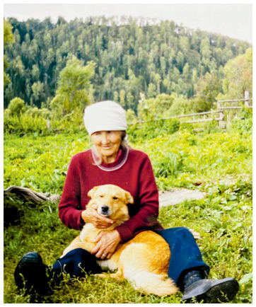 Челканская шаманка А. К. Абашева на фоне одной из гор, где живут шаманские духи.