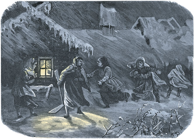 Святочные гадания, Дмоховский // Живописная Россия: Отечество наше в его земельном, историческом, племенном, экономическом и бытовом значении. СПб., 1881–1901. Т. 1. Ч. 2: Северная Россия. Озерная или Древне-Новгородская область, 1881