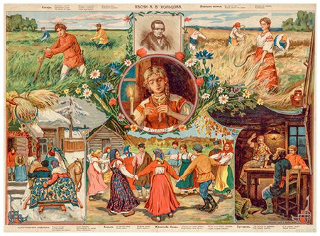 Коллаж-лубок по песням на стихи А. В. Кольцова. Московское издание начала XX в.
