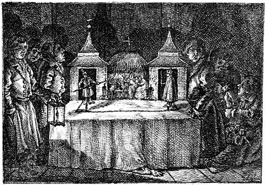 На городских улицах и в господских домах можно было увидеть вертепы — переносные театры, в которых с помощью кукол разыгрывали рождественские сценки: «В то время на Рождественских праздниках по деревням ходили какие-то странствующие не то музыканты, не то певцы древних народных былин, с бандурой и каким-то маленьким театром, в котором, при помощи марионеток весьма грубой работы, давались представления духовного содержания. Назывались эти театрики “вертепами” — очевидно, от той пещеры, в которой изображалась сцена Рождества Христова и поклонение волхвов. “Вертепы” эти, кажется, были впоследствии запрещены по распоряжению духовного начальства и в настоящее время они повсюду уже вывелись, но в то время каждый помещик считал своею обязанностью принять в дом “вертепщика”».