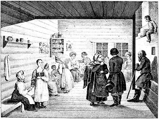 «Тут выступили вперед две хозяйки. Одна… наскоро разостлала на лавке черный бараний тулуп, шерстью вверх, ласково сказавши: