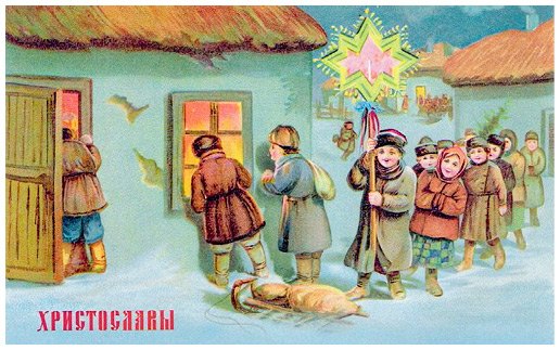 Христославы. Рождественская дореволюционная открытка.