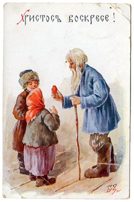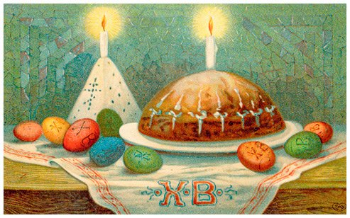 Пасхальный стол. Дореволюционная открытка.