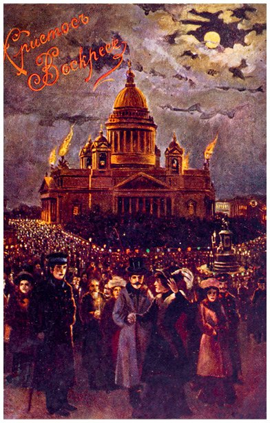 «Тут подошла и Пасха с ее прекрасной, радостной, великой ночью. Мне некуда было пойти разговеться, и я просто в одиночестве бродил по городу, заходил в церкви, смотрел на крестные ходы, иллюминацию, слушал звон и пение, любовался милыми детскими и женскими лицами, освещенными снизу теплыми огнями свечек».