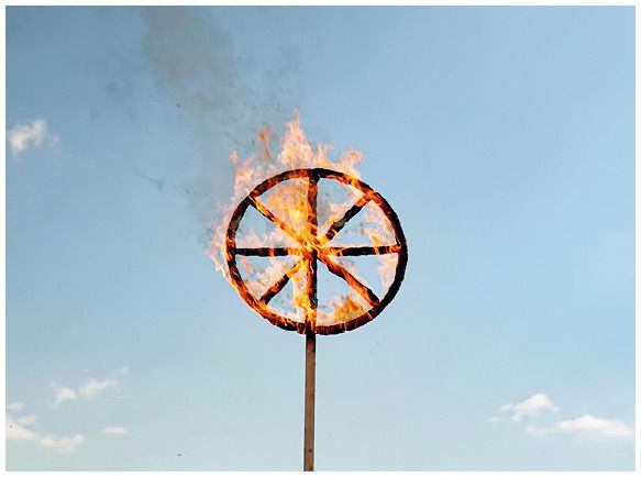 Еще один способ сжечь Масленицу — веселый, но пожароопасный — привязать что-то вроде соломенной косы к повозке, поджечь и ездить по деревне. Так делали в Пермском крае, а в Новгородской губернии горящую солому возили прямо внутри саней — но всегда следили, чтобы не случилось пожара.
