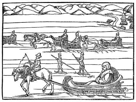 Путешествие на санях. Гравюра Сигизмунда Герберштейна, 1556 г.