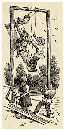 Качели. Иллюстрация к книге А. Круглова «Игры и забавы для детей». Неизвестный художник, 1917 г.