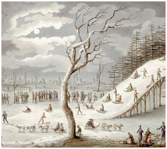 Зимние забавы. Акварель неизвестного художника по рисунку Луи Франсуа де Бомануара, начало XIX в.