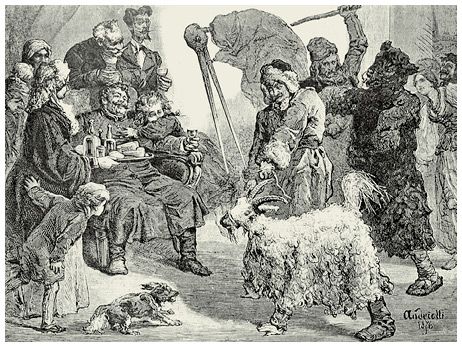 К характерным карнавальным действиям относится вождение козы или козла (ряженого или живого), распространенное в большей степени у белорусов и украинцев и в меньшей степени у русских крестьян. Козел в славянских народных представлениях осмысляется как ипостась нечистой силы и одновременно оберег от нее, а также как символ и стимулятор плодородия: считается, что козу любит домовой и боится ведьма, и для приплода остального скота во дворе (например, овец) следует держать козла.