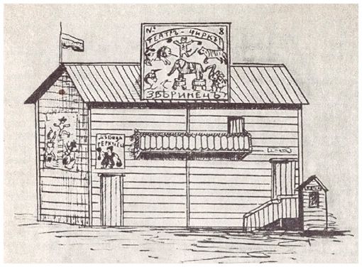 Внешний вид малого балагана на Марсовом поле. Оригинальный рисунок С. Светлова, 1893 г.