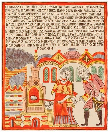 Жар в печи несравним с тем, что дает современная плита, поэтому действия по засовыванию сковороды в устье печи повторялось весьма быстро и многократно, перемежаясь наливанием теста на сковороду, которое тоже не могло остаться не отмеченным в эротическом контексте.