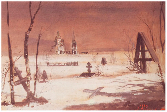Кладбище. Рисунок Ивана Билибина. 1904 г.