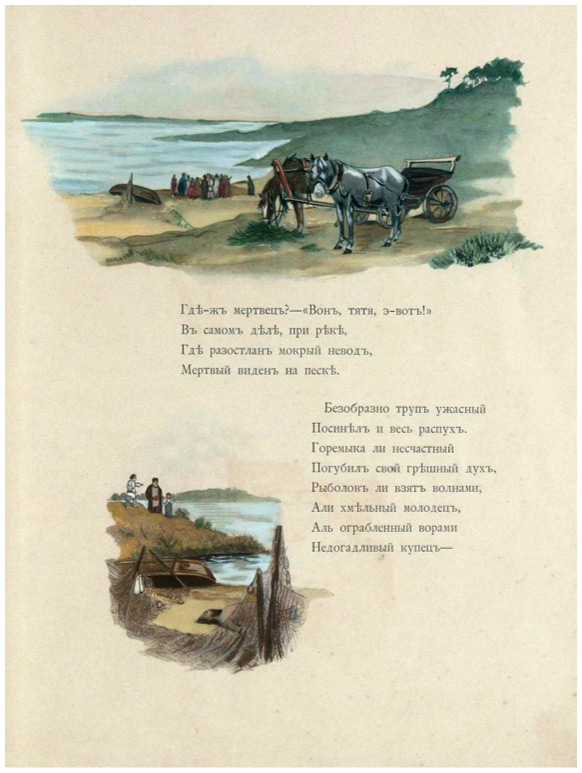 Иллюстрации Сергея Соломко к пушкинскому стихотворению «Утопленник». Страница из издания 1895 г.