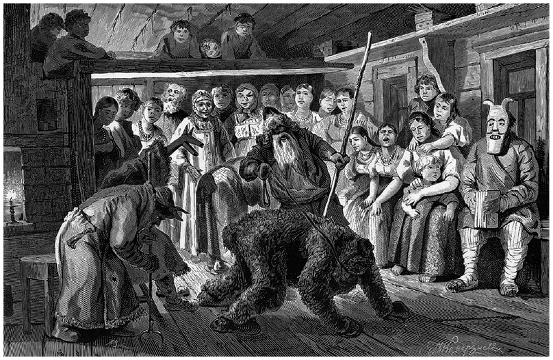 Святочные ряженые. Гравюра XIX в. из альманаха «Живописная Россия».