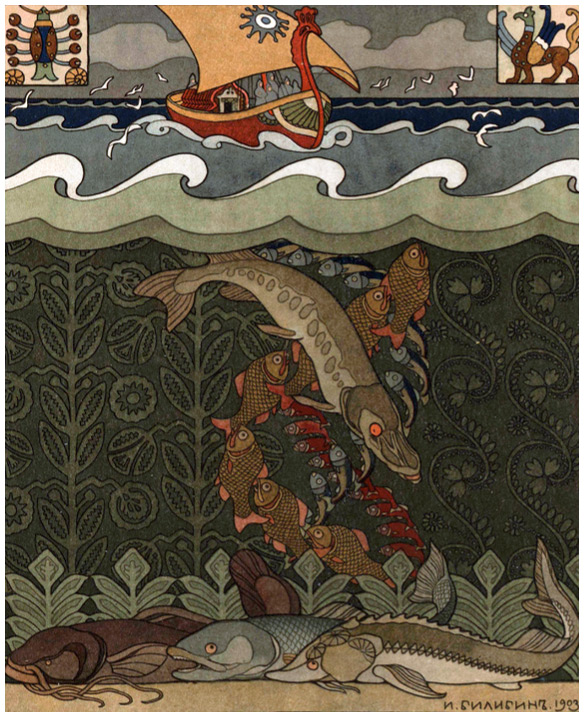 «Обернулся Вольга рыбиной-щучиной…» Иллюстрация Ивана Билибина к былине «Вольга». 1904 г.