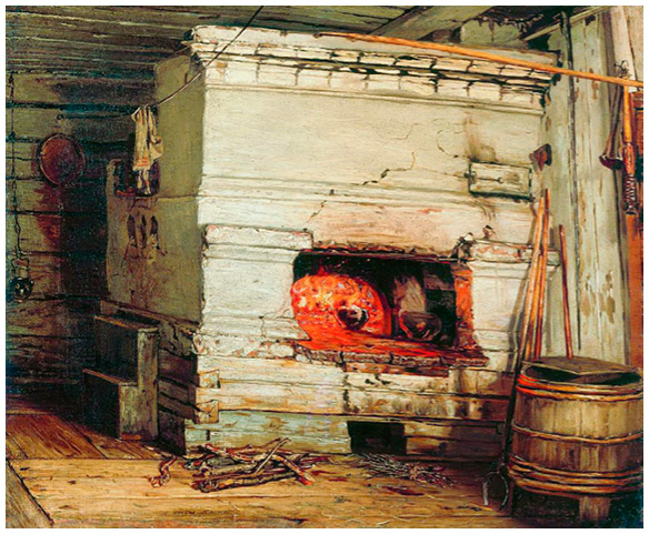 Уголок крестьянской избы с печью. Картина Василия Максимова. 1869 г.