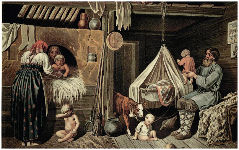 В крестьянской избе зимой.