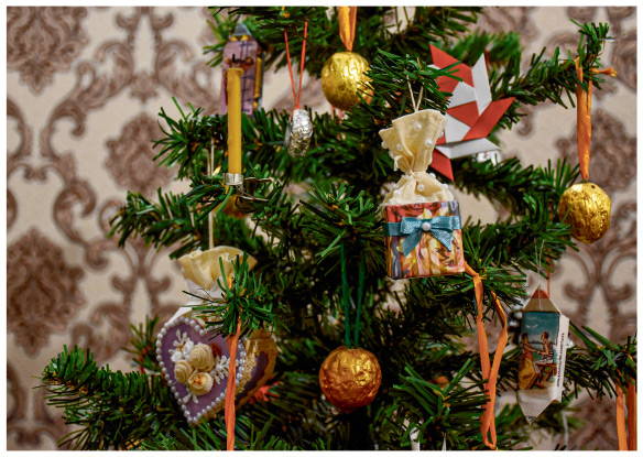Одним из самых популярных украшений стали бонбоньерки из картона или жести — коробочки разных форм и цветов, в которые прятали сладости. В рождественских каталогах представлены затейливые бонбоньерки из разных материалов: обитые бархатом, обшитые атласом, украшенные рюшами и кружевами, с зеркалом на крышечке, с картинками и с искусственными цветами.