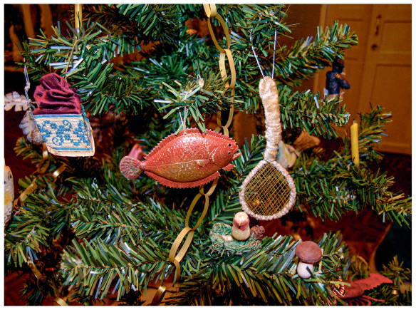 [Елка] до того густо была увешана, что ветки ее гнулись под тяжестью конфет и украшений. Чего тут не было! Какие прелестные бонбоньерки, шкатулочки, игрушки, фигурки и блестящие разноцветные гирлянды и цепи из леденцов и золотых и серебряных шариков. У меня, как и всех детей, глаза разбежались на все это великолепие. Особенно красивыми казались мне разные фрукты: яблоки, груши, апельсины, сливы и персики, прекрасно сделанные из сахара, и огромный пряничный дом, украшенный фольгой вместо окон, с шоколадными дверями и миндальными ручками, который стоял на самой верхушке дерева» (В. П. Желиховская. «Как я была маленькой», 1891).