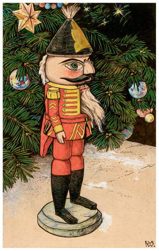 Щелкунчик на фоне рождественской елки. Иллюстрация Виллема Венкенбаха, 1898 г.