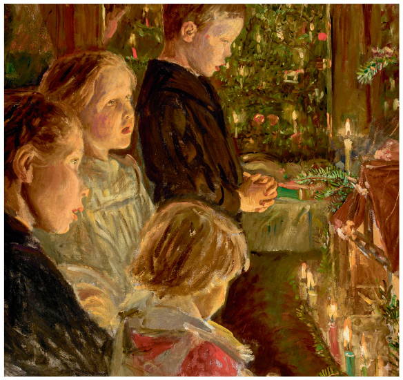 Удивительным временем в доме <Шаляпина> было Рождество. Дом наполнялся радостным шумом. В столовой кипел самовар, огромный стол украшали различные яства. Восторг детей достигал апогея, когда начинали доставать подарки. Шаляпин смотрел на все это и радостно улыбался. Это было самым большим счастьем в его жизни (Э. В. Соколова. «Дом-музей Ф. И. Шаляпина»).