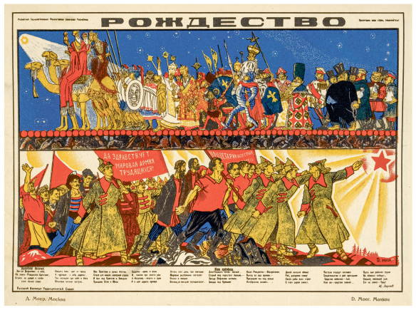 Антирождественский агитационный плакат с иллюстрацией Д. Моора. 1925 г.