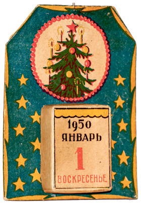 Упадет двенадцатый удар, люди сдвинут свои чарки и скажут: «С новым счастьем!» Милый сердцу обычай — встреча Нового года. Население города Энска готовилось к этой встрече целый месяц. Громадный был спрос на елочные украшения: блестящие шарики, целлофановые хлопушки, картонажи, куколки, золотой «дождь», золотые орехи, разноцветные свечи, «елочный блеск», похожий видом на нафталин и продающийся в запечатанных пакетиках, как глауберова соль. Одних только дедов-морозов разных размеров в декабре продано четырнадцать тысяч штук. В том числе совершенно выдающийся дед, дед-экстра, дед-люкс в рост человека, художественно сработанный в двух экземплярах промартелью «Игркомбинат». Купили этого деда, как и следовало ожидать, детские ясли станкостроительного завода: разве директор завода товарищ Акиндинов упустит случай приобрести диковину, какой ни у кого в городе нет? (В. Ф. Панова. «Времена года», 1953).
